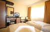 Camerele duble sunt dotate cu aer conditionat, minibar, TV, internet, baie cu cabina de dus cu hidromasaj, uscator par, mocheta, mobilier nou, 2 fotolii, acces pe baza de cartela. Camerele de la etajul 1 si 2 au balcon.