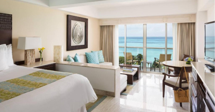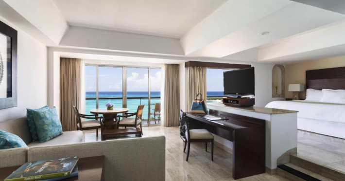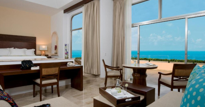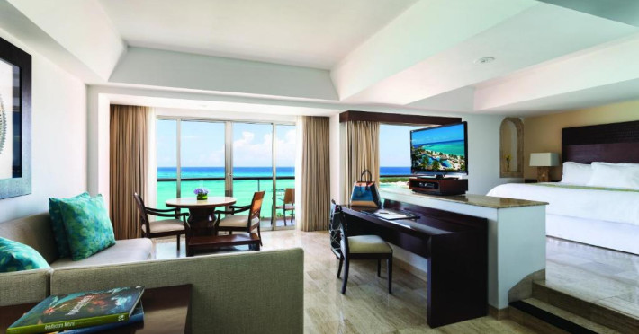 Suitele de la Grand Fiesta Americana Coral Beach Cancun - All Inclusive au vedere directă sau parțială la ocean. Toate au o zonă de relaxare și balcon privat. De asemenea, pentru ca oaspeții să se bucure de cat mai mult confort, camerele includ un minibar și seif.