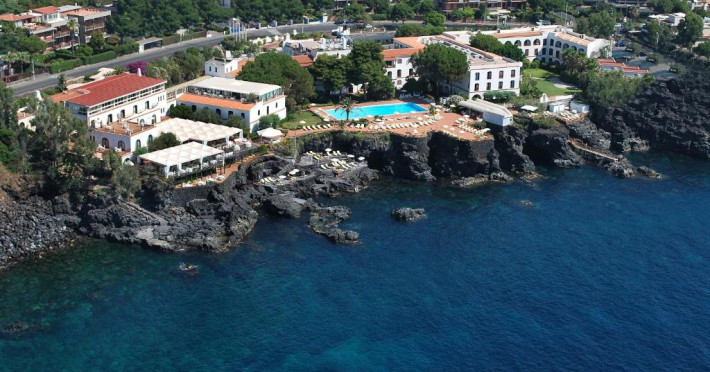 Grand Hotel Baia Verde, de 4 stele, este situat pe stanci vulcanice, cu vedere la un golf natural, pe drumul dintre Acicastello și Catania. Acesta oferă o piscină in aer liber și o sală de sport gratuită.