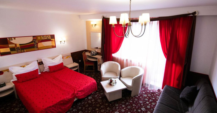 The hotel is situated in a quiet, peaceful residential area in Brasov, surrounded by picturesque mountains and offering a relaxing and pleasant stay. There are a number of restaurants, bars and shopping opportunities in the area, whilst links to the public transport network are within walking distance of the hotel. The train station is about 5 km away in Gara Brasov. There are also numerous points of interest in the area, including an adventure park, a zoo and the Black Church. The hotel offers marvellous views and is the perfect place for business and leisure travellers alike. The design hotel is close to the forest and between 2 ski resorts, but also near the biggest commercial area of the city. The building is decorated in a combination of classic and modern styles, with a total of 20 carefully arranged rooms that provide excellent facilities. Guests are welcomed in a lobby with 24-hour reception and check-out service. Further facilities include lift access, a childrens playground, conference facilities, WLAN Internet access, room and laundry services, and a car park. Guests can also wine and dine in the café, bar and restaurant. The rooms have a unique design, specially created to provide comfort and warmth and to facilitate high-speed Internet access. Most of the rooms have a hot tub, work desk, cable TV, card access door and a telephone in the room and also in the en suite bathroom with shower, bath and hairdryer. Guests can enjoy the comfort of a double or king-size bed. Further in-room amenities include a radio, minibar, individually regulated air conditioning, central heating, and a balcony or terrace. Guests can enjoy a few relaxing moments in the sauna or with a massage. There is also a gym and sun loungers are laid out ready for use beside the outdoor swimming pool, surrounded by a beautiful garden. The hotel provides meals such as a breakfast buffet, and traditional and international cuisine for both lunch and dinner à la carte.Datorita dinamicitatii domeniului disponibilitatea ofertelor se modifica de la un moment la altul. De aceea ofertele sunt valabile in limita locurilor disponibile. Agentia nu este responsabila pentru eventualele neconcordante care pot aparea intre informatiile privind tarifele si alte detalii din site si informatiile primite in agentie. In aceste cazuri vor avea prioritate, intotdeauna, informatiile primite in agentie.