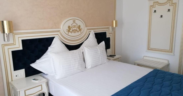 - camerele duble decorate cu mobilier in stil clasic si o suprafata de 17 mp sunt impartite in 2 zone specifice. Zona de dormit si terasa cu vedere la piscina sau cu vedere la statiune. Camerele au mocheta in culori calde, marine si sunt dotate cu pat matrimonial, noptiere si suport bagaje. Balconul este dotata cu masuta, scaune si scrumiera.Capacitatea unei camere duble permite gazduirea a maxim 4 persoane, 2 adulti si 2 copii;
