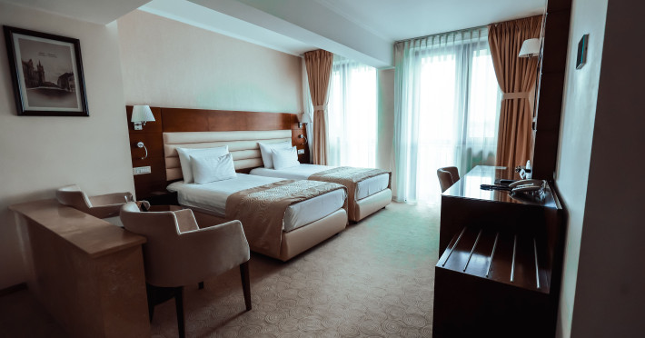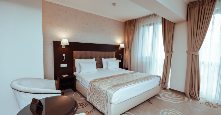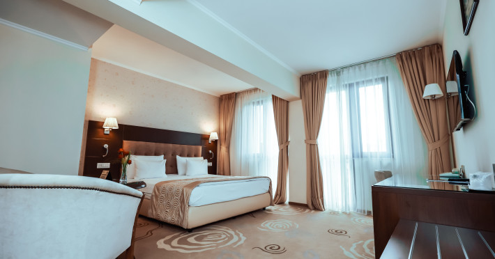Grand Hotel Coroana se afla in centrul orasului Bistrita, la 500 de metri de piata principala si de biserica din secolul al XIV-lea. Povestea hotelului nostru incepe pe 30 aprilie 1974, fiind inca de atunci un reper al orasului Bistrita. Cunoscut initial sub numele de âCoroana de Aurâ, hotelul a fost mentionat si in romanul âDraculaâ de Bram Stoker. Grand Hotel Coroana imbina traditia cu modernitatea, pastrand legatura cu oaspetii de-a lungul timpului. Evenimentele speciale si zambetele clientilor ne-au definit si ne motiveaza sa continuam aceasta calatorie. La 50 de ani de la deschidere, ne-am reinventat in stil Grand. Acum, experienta memorabila are un singur nume, la Bistrita, Grand Hotel Coroana. Povestea hotelului etalon al orasului merge mai departe, prin grija la detalii, o continua investitie in facilitati si preparate cu bun gust din bucataria internationala si traditionala.Datorita dinamicitatii domeniului disponibilitatea ofertelor se modifica de la un moment la altul. De aceea ofertele sunt valabile in limita locurilor disponibile. Agentia nu este responsabila pentru eventualele neconcordante care pot aparea intre informatiile privind tarifele si alte detalii din site si informatiile primite in agentie. In aceste cazuri vor avea prioritate, intotdeauna, informatiile primite in agentie.