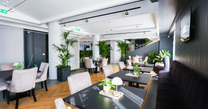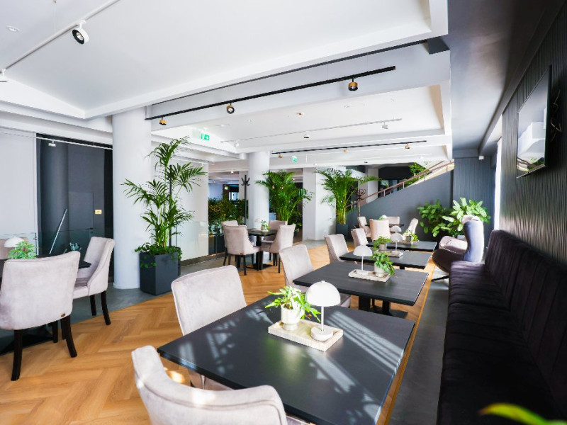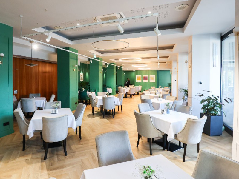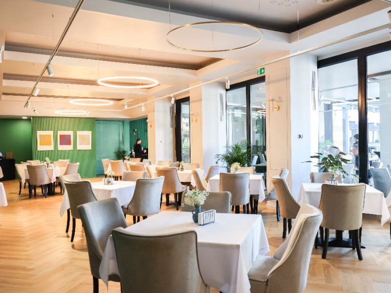 Restaurantul cu o capacitate de 250 de locuri va ofera atat cafeaua de dimineata, pranzuri de afaceri dar si cine romantice. Meniul restaurantului este diversificat cu preparate reinterpretate.