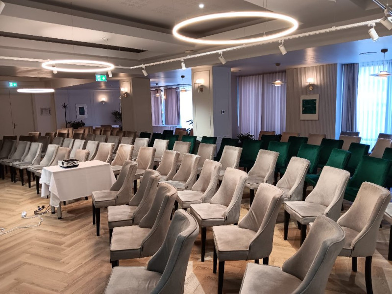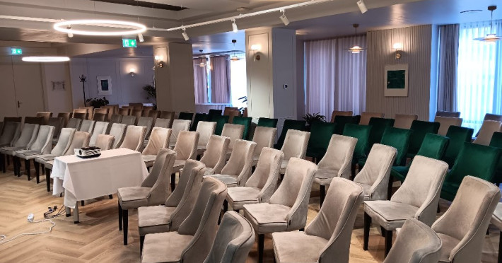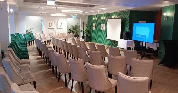 Sala de conferinte amenajata in cadrul restaurantului ofera: tehnologie audio-video pentru organizarea de conferinte, traininguri, prezentari de firme sau produse. Capacitate adaptabila: de la 20 la 100 de locuri, in functie de nevoile clientilor. Redimensionare posibila: sala poate fi impartita in doua sali distincte, fiecare avand dotarile necesare.