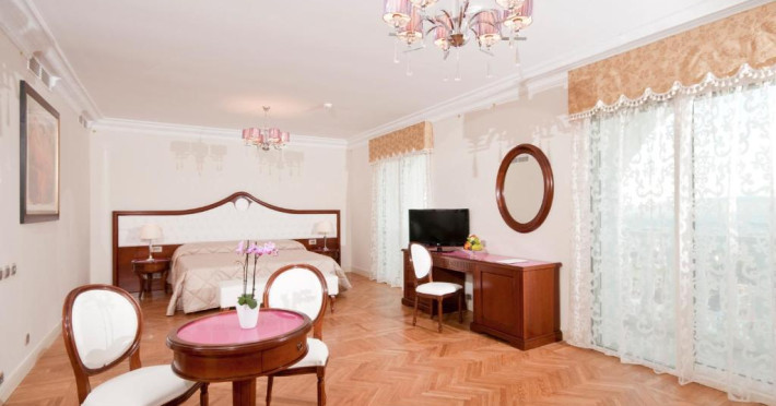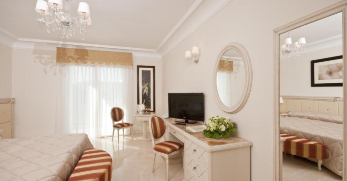 Camerele spatioase si elegante au podea cu marmură sau parchet si mobilier in stil Liberty. Băile somptuoase sunt placate cu mozaic pretios din sticlă si includ o cadă spa. Printre facilități se numără un TV cu ecran plat de 32 inch cu canale prin satelit, un minibar și un seif pentru laptop. Multe dintre camere beneficiază de balcon.