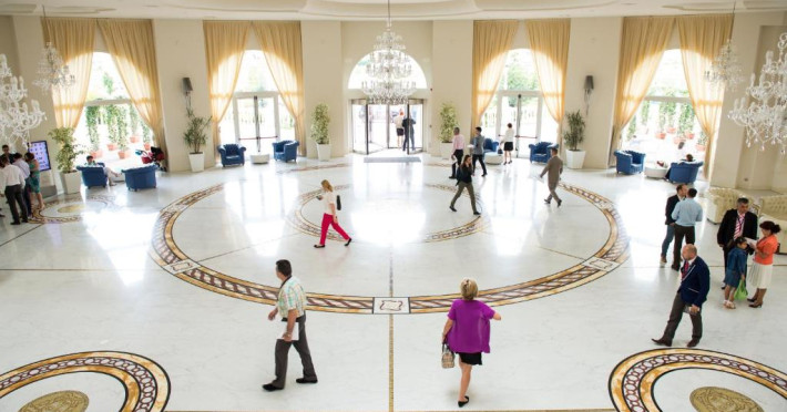 Grand Hotel Italia are un hol mare cu pardoseală de marmură si candelabre din sticlă de Murano, precum și un restaurant specializat in bucătărie italiană și internațională.