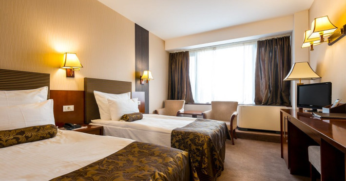 Dotari generale camere: aer conditionat, baie cu dus - sau cada, uscator de par, telefon, birou. Hotelul dispune si de camere de tip family - cu usa comunicanta intre ele (o camera matrimoniala + camera cu canapea extensibila) si apartamente compuse din living cu canapea fixa si dormitor.