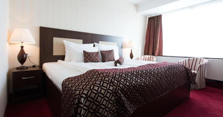 Camerele de la Grand Hotel Napoca au decor modern, mochetă, aer condiționat și TV cu ecran plat. La un cost suplimentar, proprietatea acceptă animale de companie.