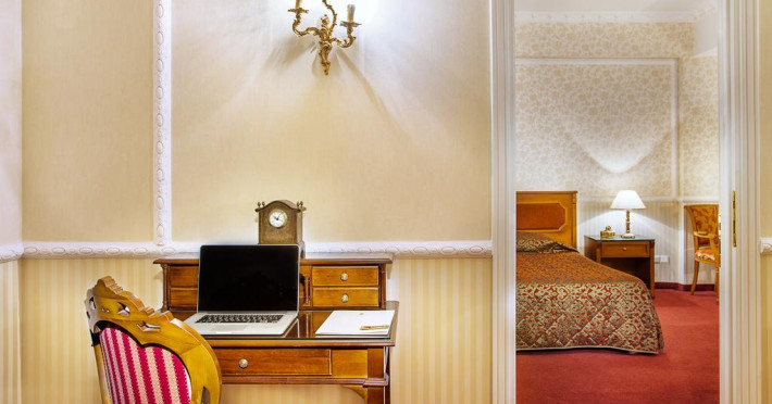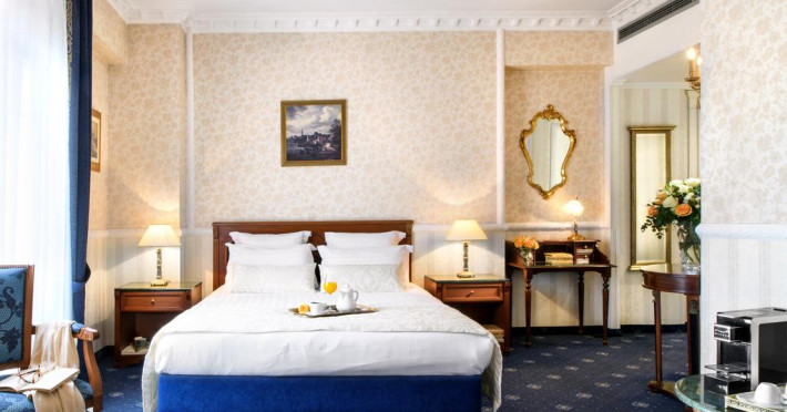 Sunt disponibile 261 camere. Camerele confortabile de la Grand Hotel Palace au pardoseală de gresie/ marmură, aer condiționat, Tv cu canale prin satelit și seif. Unele camere cu balcon cu vedere la oraș. Fiecare cameră dispune de un aparat pentru preparare cafea sau ceai, cană-fierbător și minibar. Oaspeții pot solicita serviciul de room service pentru a servi masa sau diverse băuturi. În camere există baie cu cadă sau duș, foehn, articole de toaletă gratuite, precum și halate de baie și papuci. Oaspeții au acces gratuit la serviciul Wi-fi în camere. Curățenia in cameră se face zilnic. Toate camerele spațioase de la Grand Hotel Palace au zonă de relaxare. Proprietatea oferă camere pentru familie cu o suprafață mai mare și un număr mai mare de paturi față de cele standard.