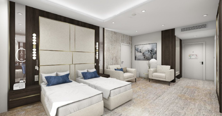 Acesta va dispune de 87 de camere duble, 4 suite si 25 deapartamente, distribuite pe 8 etaje, o zona proprie de SPA cu bazine interioaresi exterioare, o zona de tobogane interioare si un spatiu splash pentru copii.