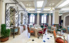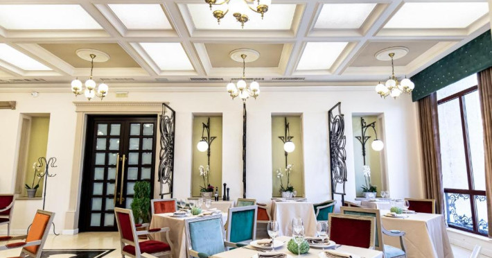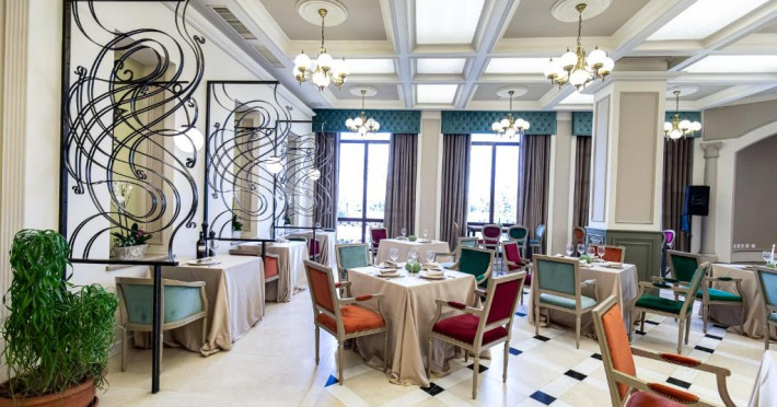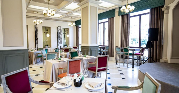 Oaspetii pot savura o gamă variată de preparate rafinate la restaurantul Gustave, care cuprinde un cocktail bar si 2 saloane.