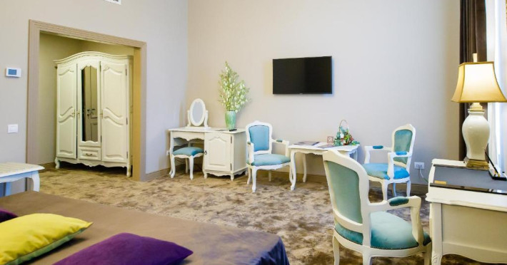 Camerele si suitele confortabile si elegante sunt decorate in nuante luminoase de auriu si albastru cu mobilier clasic si facilităti moderne, inclusiv TV cu ecran plat cu canale prin cablu si minibar.