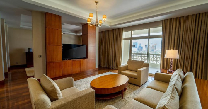 Unitatea de cazare are un balcon cu vedere la Golful Arabic sau la centrul orașului Doha. Unele unități oferă bucătărie și zonă de relaxare, iar fiecare unitate este dotată cu mobilier modern.