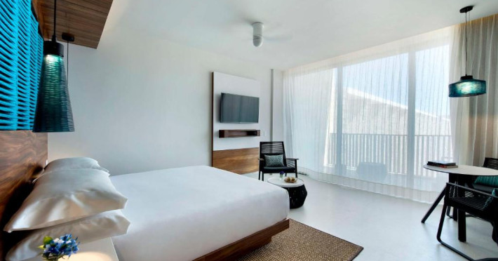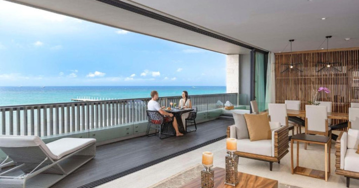 Cazare confortabilă: Camerele oferă vedere la mare, balcoane, băi private, aer condiționat și facilități moderne. Facilitățile suplimentare includ un studio de yoga, un centru de fitness și un loc de joacă pentru copii, care satisfac toate nevoile oaspeților.