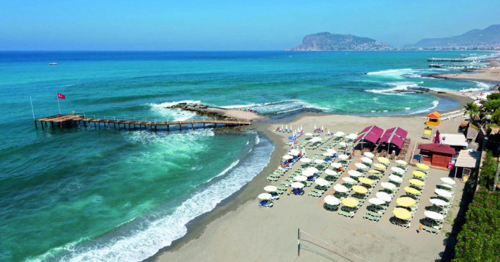 Hotelul Grand Kaptan 5* este situat la 50 m de plaja proprie, la 3 km de centrul orașului Alanya și 135 km de aeroportul din Antalya.
