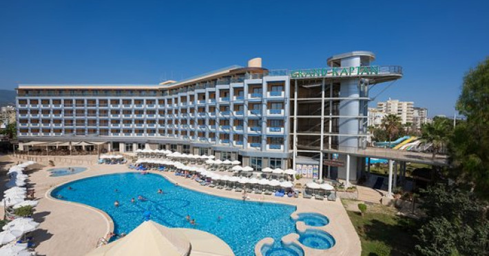 Hotelul Grand Kaptan dispune de restaurant cu meniu buffet, restaurant a la carte cu specific Italian, baruri, piscina principala, piscina pentru copii si aquapark cu 3 tobogane, mini club (4-12 ani), mini loc de joaca, autobus spre Alanya (gratis), cameră TV, cameră pentru citit, centru SPA, baie turcească, sporturi pe plaja, fitness, sezlonguri saltele si umbrele.
