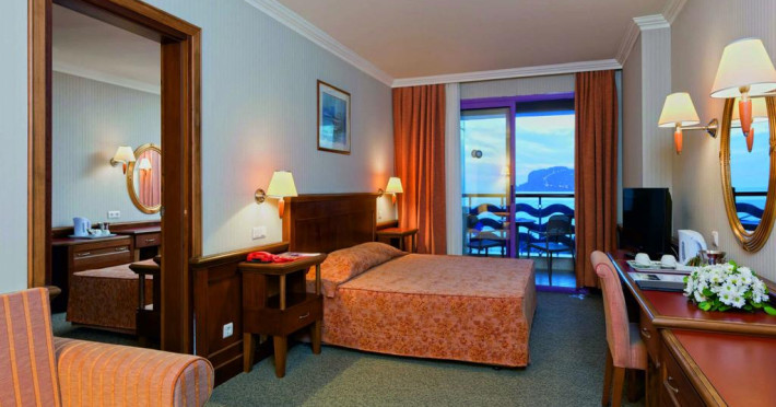 Locatie: Amplasare a hotelului la malul mării Situat in centrul orașului Alanya, hotelul nostru este situat foarte aproape de zidurile castelului Seljuk si are o istorie. Cu atmosfera sa care imbina viata orasului, oaspetii nostri se vor bucura de portul si golful Alanya. Ofera o priveliste magnifica. Distanță și Transport Aeroportul Alanya Gazipasa 37 km. Aeroportul Antalya 131 km. Centrul orașului Alanya 4 km. De la hotel la centrul orașului Serviciu gratuit de transfer (de 6 ori pe zi, poate varia în funcție de condițiile meteo), Taxi (contra cost), Autobuz (contra cost) Facilitate hotel: Restaurant: 2 Restaurante A la Carte 5 Baruri 1 Patisserie Bar de înghețată Room service 24 de ore Se pot pregăti alimente dietetice Barul din hol deschis non-stop Facilitate camera: Curățenie zilnică și schimb de lenjerie. Schimb de prosoape la cerere. Canapea extensibilă 1 baie (duș sau cadă) Balcon Podea cu covor sau laminat Mini bar Televizor Seif Fierbător de apă Plaja: Ponton de lemn de la hotel spre plaja cu nisip și cu pietre Șezlonguri gratuite, umbrele, prosoape de plajă (gratuite) Activitati: Activități pentru copii / Mini Club Vârstă 4-12 ani Jocuri Mâncare pentru copii Pictură facială Mini loc de joacă Aquapark Piscină pentru copii Meniu pentru copii în restaurantul A la Carte TV în cameră cu canale pentru copii Carucior pentru copii (contra cost)Localizare