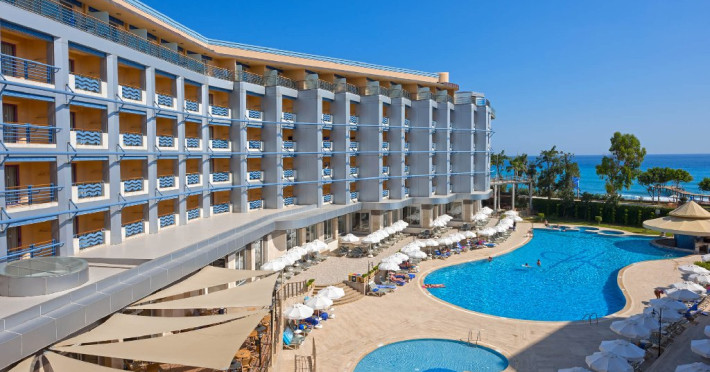 Descriere: Hotelul a fost deschis in anul 1991 si renovat in 2011. Este construit pe un teritoriu cu o suprafata de 16000 mp si dispune de 334 de camere repartizate pe 5 etaje.Localizare hotel: Hotelul este situat la aproximativ 4 km de centrul orasului Alanya si la aproximativ 130 km fata de aeroportul Antalya.