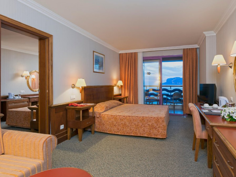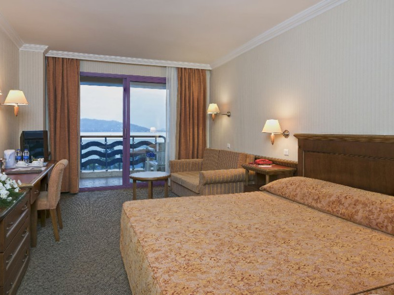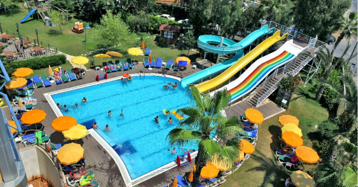 Facilitati hotel: Hotelul ofera oaspetilor sai urmatoarele facilitati: restaurant principal, 2 restaurante a la carte, patiserie, 5 baruri, inghetata, piscina exterioara, aquapark cu 3 tobogane, piscina pentru copii, darts, volei pe plaja, gimnastica in apa, centru fitness, tenis de masa, spectacole seara, muzica live, baie turceasca, sauna, sala de conferinta, internet wi-fi in lobby, mini club 4-12 ani, mini park, aquapark, piscina pentru copii.