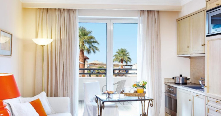 Camerele luminoase și confortabile sunt decorate in nuanțe mediteraneene și sunt dotate cu balcoane sau terase private. Facilitățile includ o piscină exterioară inconjurată de șezlonguri și umbrele, un restaurant cu specific grecesc și internațional, precum și un bar la piscină unde puteți savura cocktailuri răcoritoare.