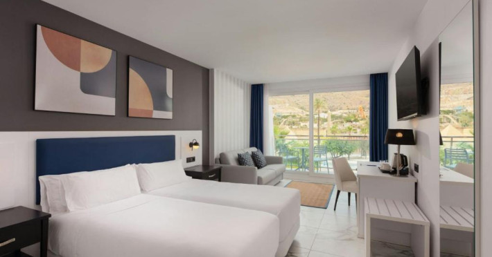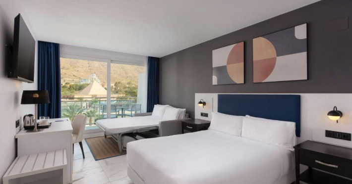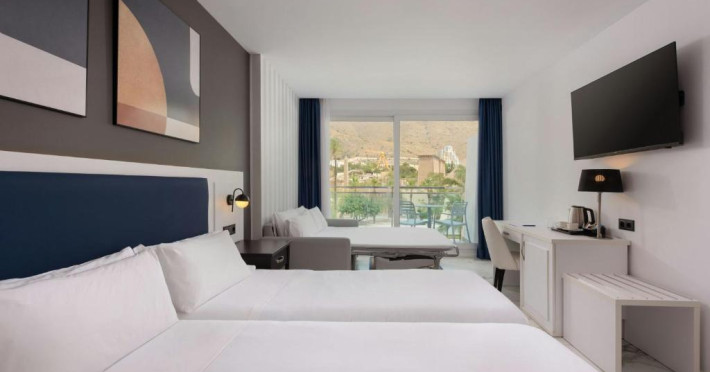 Facilitati hotel: receptie 24h, schimb valutar, birou de turism, restaurant, bar, snack bar, piscină in aer liber, acces gratuit nelimitat la parcurile tematice Terra Mítica, Mundomar, Iberia Park și Aqualandia, in funcție de programul acestora, seri de film, club pentru copii, echipament de joacă pentru exterior, zonă de joacă pentru copii inăuntru, tenis de masă, cameră de jocuri, sală de fitness, terasă, grădină, WiFi gratuit, parcare.