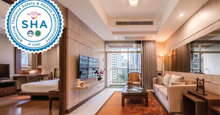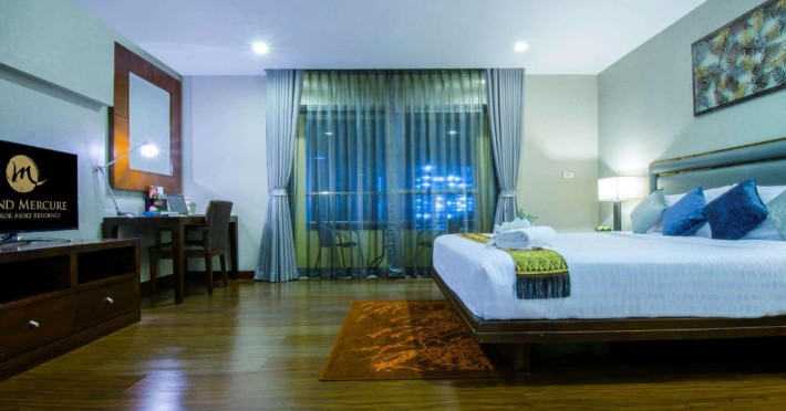 Grand Mercure Bangkok Asoke Residence - SHA Extra Plus Certified oferă lux de 5 stele, cu acces gratuit la internet WiFi și parcare privată gratuită. Are o piscină pe acoperiș, centru de fitness și facilități de saună. Serviciu de transfer gratuit la centrul comercial Terminal 21 și gara Skytrain BTS Asoke.