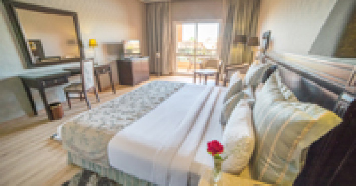 The hotel Mogador Palace Agdal - Luxury Hotel is equipped with Wi-Fi, a lift, a hairdresser, a jacuzzi as well as a TV lounge. In the outdoor area of the property you will find a garden as well as a heated pool, where sun umbrellas are available for free. There is also a children's pool. Furthermore, outside you can find a terrace. For your entertainment, the hotel offers a library/reading room. You can store your luggage in the hotel's storage room. For conventions and other business meetings, the hotel offers a conference area. If you want to explore the holiday region, you can use the car rental service close to the hotel (extra fee). Smoking is permitted in the hotel. The hotel requires that all guests pay a deposit upon arrival. Due to its barrier-free facilities , such as wheelchair-accessible bathrooms, the hotel is also suitable for wheelchair users. Catering Lunch and dinner are served from the buffet. In the gastronomic area also vegetarian and gluten-free dishes are served. Sports & Leisure A sauna awaits you in the spa area. Let yourself be pampered in the Hamam.The hotel Mogador Palace Agdal - Luxury Hotel is equipped with Wi-Fi, a lift, a hairdresser, a jacuzzi as well as a TV lounge. In the outdoor area of the property you will find a garden as well as a heated pool, where sun umbrellas are available for free. There is also a children's pool. Furthermore, outside you can find a terrace. For your entertainment, the hotel offers a library/reading room. You can store your luggage in the hotel's storage room. For conventions and other business meetings, the hotel offers a conference area. If you want to explore the holiday region, you can use the car rental service close to the hotel (extra fee). Smoking is permitted in the hotel. The hotel requires that all guests pay a deposit upon arrival. Due to its barrier-free facilities , such as wheelchair-accessible bathrooms, the hotel is also suitable for wheelchair users. Catering Lunch and dinner are served from the buffet. In the gastronomic area also vegetarian and gluten-free dishes are served. Sports & Leisure A sauna awaits you in the spa area. Let yourself be pampered in the Hamam.