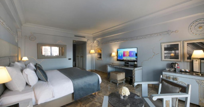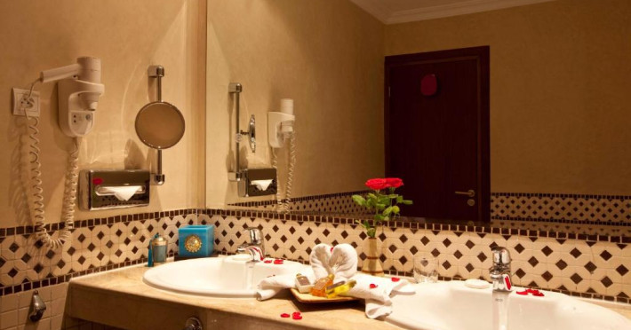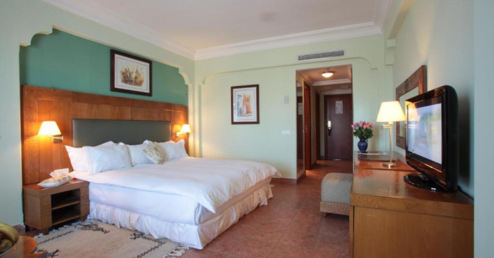 Toate camerele de la Grand Mogador Menara au aer condiționat și balcon. Oaspeții pot admira vederea la piscină sau la Palatul Congresului, situat pe renumitul bulevard Mohammed VI.