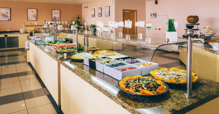 Pentru micul dejun si cină sunt oferite bufete variate, precum și bucătărie deschisă. La snack barul de langă piscină sunt servite masa de pranz, băuturi si gustări. Barul cu pian oferă băuturi si spectacole de mai multe ori pe săptămană.