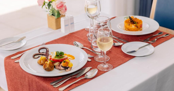 Micul dejun este servit in barul cu terasă sau in restaurantul Aqua. Este disponibil un bar cu vedere la ocean și la piscină.