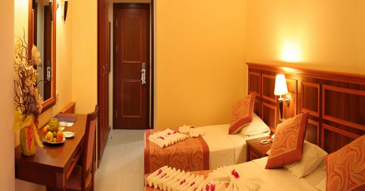 Hotelul are un numar total de 85 camere, clasificate in camere standard (22 mp) si camere Economy care au aceeasi dimensiune ca si cele standard dar sunt pozitionate la etajul unu si nu au balcon. Toate camerele au baie privata cu cabina de dus si uscator de par, aer conditionat split, telefon direct, mini bar (apa numai la sosire), seif (contra cost), podea ceramica, TV prin satelit, balcon (exceptie camerele economice).