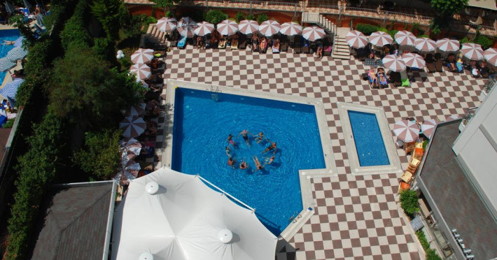 Luxosul hotel Grand Okan este situate fix pe binecunoscuta plaja Cleopatra. Ofera o piscine in aer liber si tratamente de masaj. Toate camerele spatioase dispun de facilitate moderne. Are o cladire cu 6 nivele, cu camere de tip standard si family.