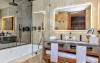 Baie partial deschisa cu cada cu hidromasaj si dus separat, uscator de par, halate, papuci