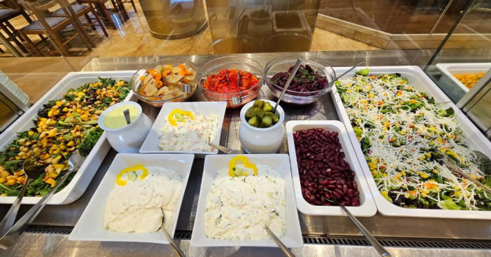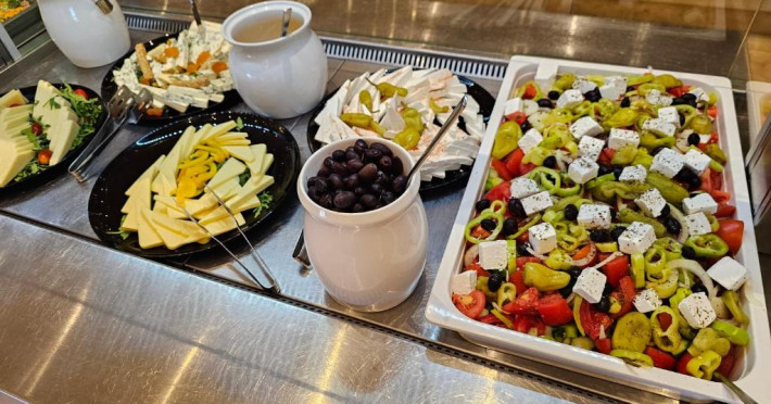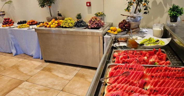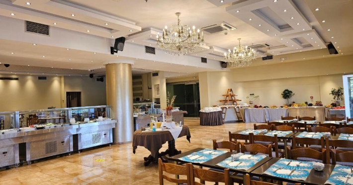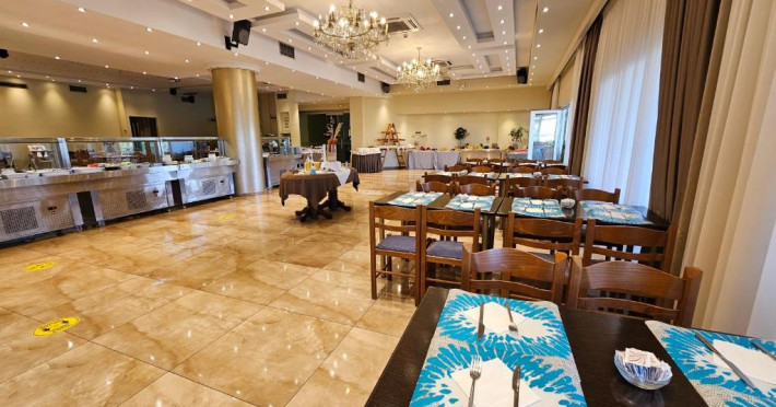 Restaurantul hotelului servește preparate din bucătăria grecească și internațională, iar barul de la recepție este locul ideal pentru un cocktail in timpul serii. Poziționarea centrală vă permite să explorați cu ușurință magazinele, tavernele și viața de noapte din Paralia Katerini.