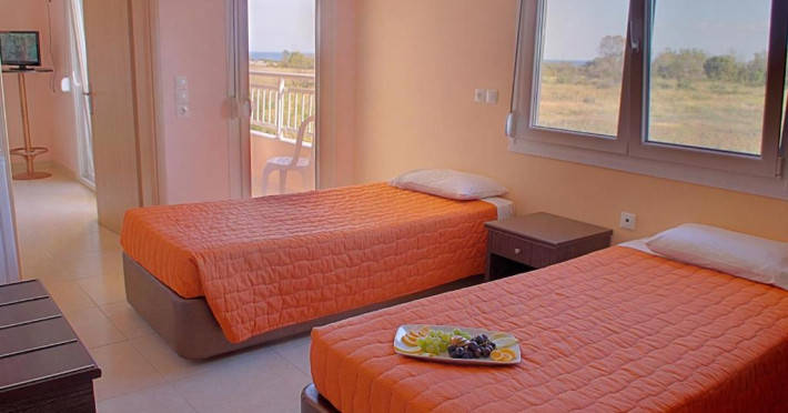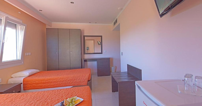 Camerele luminoase sunt dotate cu aer condiționat, TV satelit, mini-frigider și balcon - multe dintre ele oferind vedere spre Marea Egee sau spre Muntele Olimp. Oaspeții se pot bucura de piscina exterioară inconjurată de șezlonguri și umbrele, precum și de zona de bar de langă piscină.
