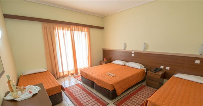 Un total de 67 de camere: Single si Duble (aproximativ 36 mp), Duble Superior (aproximativ 36 mp), Duble Bungalow (aproximativ 40 mp), Family (aproximativ 50 mp). Dotate cu: aer conditionat, incalzire, TV, telefon, acces la internet Wi-Fi (gratuit), mini-frigider, uscator de par (la cerere), balcon/terasa. Pat dublu sau doua paturi de o persoana. Camerele au vedere spre piscina sau spre gradina.