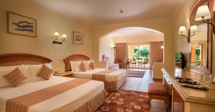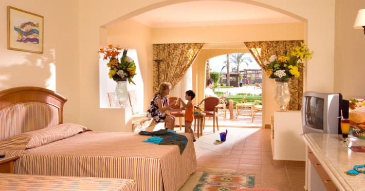 Camerele confortabile de la Grand Plaza Resort Sharm au pardoseală de gresie/ marmură, aer condiționat, Tv cu canale prin satelit și seif. În camere există baie cu cadă sau duș prevăzută cu foehn. Unele camere au balcon cu vedere la mare sau la piscină. Fiecare cameră dispune de minibar și cană-fierbător. Oaspeții pot solicita serviciul de room service pentru a servi masa sau diverse băuturi. Curățenia in cameră se face zilnic. Proprietatea oferă camere pentru familie cu o suprafață mai mare și un număr mai mare de paturi față de cele standard. Se pot rezerva de asemenea camere pentru nefumători.