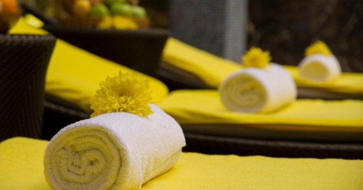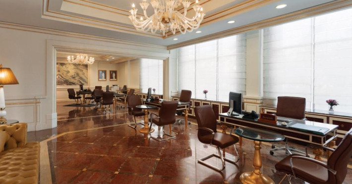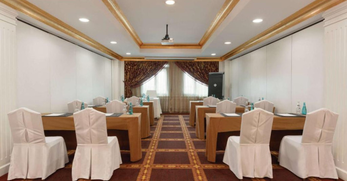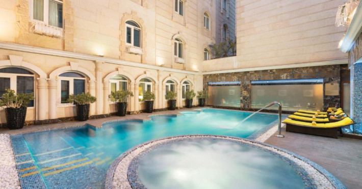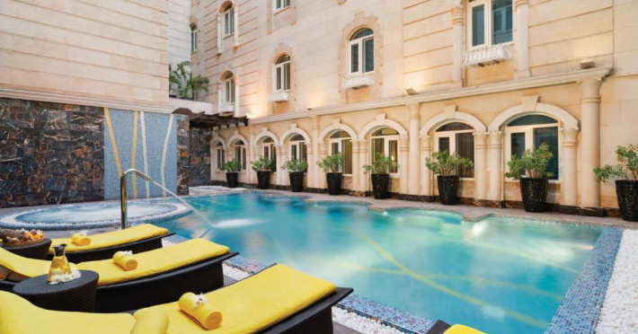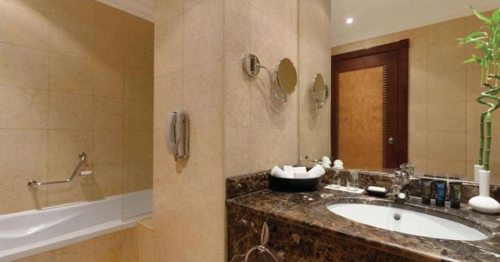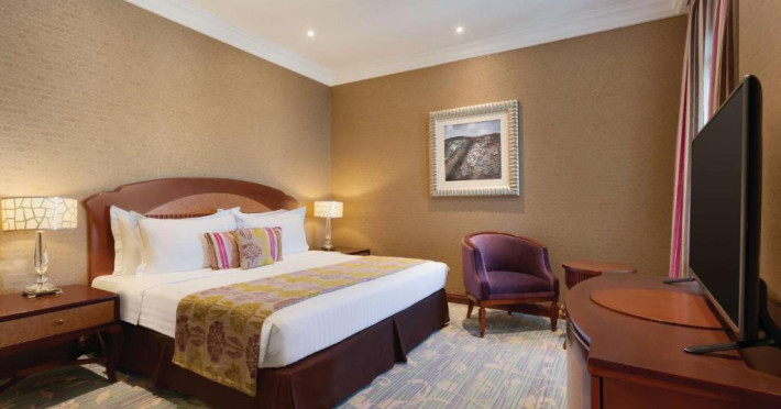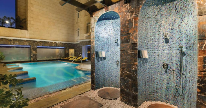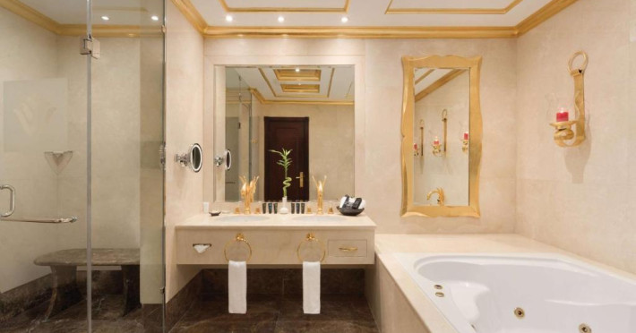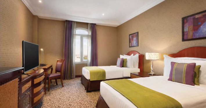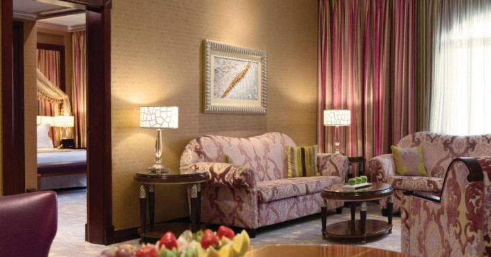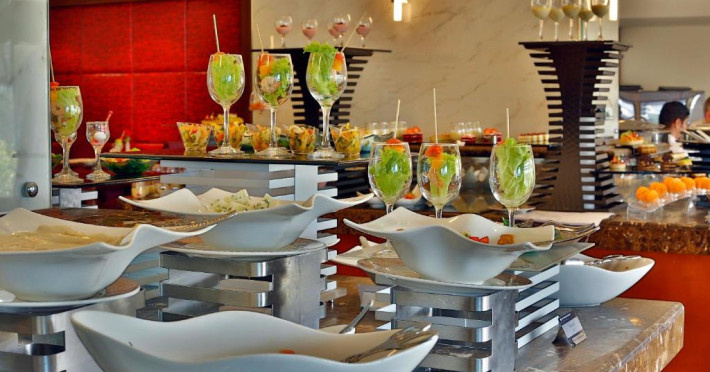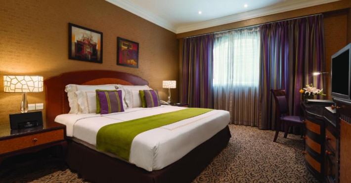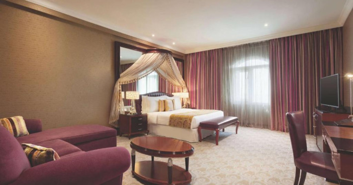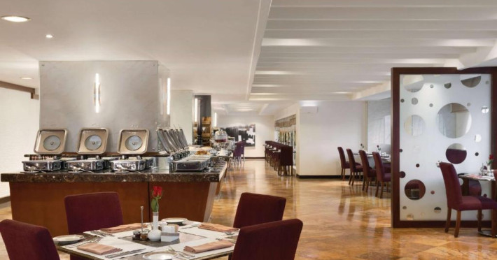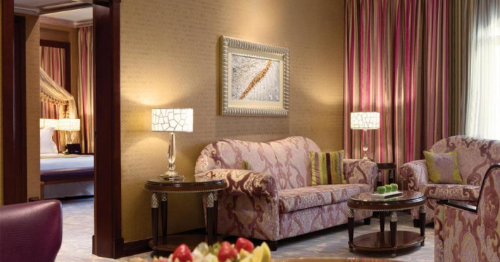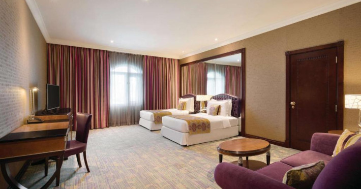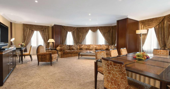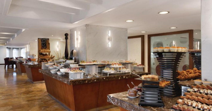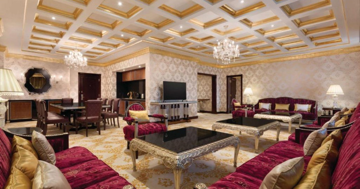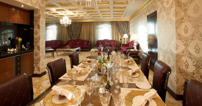 Oaspeții se pot bucura de mancăruri de talie mondială intr-una dintre unitățile hotelului, mic dejun internațional, pranz sau cină la Grand Gourmet. Al Kut Lounge din incintă servește produse de patiserie și cafea de inspirație europeană. Nu sunt disponibile băuturi alcoolice.