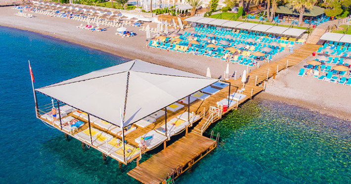 Hotelul pune la dispozitia turistilor restaurant principal, 1 restaurant a la carte (turcesc si pescaresc, cu rezervare, contra cost), 6 baruri, 2 piscine exterioare, piscina interioara, tobogan de apa, cabinet medical, de coafor, Wellness centre, centru comercial, spalatorie, schimb valutar, rent-a-car, sala de conferinte (pentru 700 pers.), 2 piscine exterioare pentru copii, piscina interioara pentru copii, teren de joaca, mini-club (4-12 ani), carucioare pentru copii (contra cost).