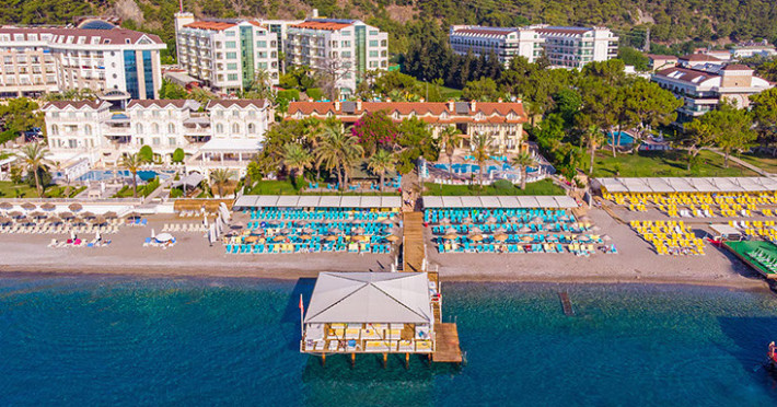 Locație: Grand Ring Hotel este situat în Beldibi Mah.Başkomutan Atatürk Cad.no:512, Kemer/ANTALYA. Poziționat în centrul Beldibi, la o distanță de 1 km, și la 10 km de Kemer, oferind acces rapid la aeroportul Antalya (45 km) și la orașul Antalya (35 km). Facilități Hoteliere: Limbi Vorbite: Turcă, Engleză, Germană, Rusă Carduri Acceptate: Visa, Master Card Camere: Toate camerele sunt dotate cu televizor cu ecran plat, telefon, minibar, aer condiționat, seif, baie cu WC, uscător de păr și balcon. Tip: All Inclusive Detalii: Mic dejun, prânz, cină, gustare de noapte, room service 24 de ore (cu taxă), serviciu de gustare pe plajă, patiserie. Restaurante și Baruri: Lobby Bar, Pool Bar, Beach Bar, Main Restaurant, Disco Bar (băuturi locale nelimitate în anumite intervale). A la Carte Restaurant: Seafood Kitchen și Mexico Kitchen (cu taxă). Activități Gratuite: Gimnastică, Fitness Center, Aerobic, Step, Tenis de masă, Darts, Piscină și tobogane, Saună, Baie turcească. Servicii cu Plată: Masaje și tratamente SPA, Închiriere de mașini, Coafor, Foto, Spălătorie, Birou medical. Animatie și Divertisment: Zone de joacă pentru copii, spectacole de noapte zilnice, Mini Club pentru copii (04–12 ani), babysitter disponibilă contra cost. Altele: Tensiune electrică: 220 V Programul și conținutul restaurantelor, barurilor și altor facilități pot fi modificate de managementul hotelului fără notificare prealabilă, în funcție de condițiile sezoniere și climatice.Localizare