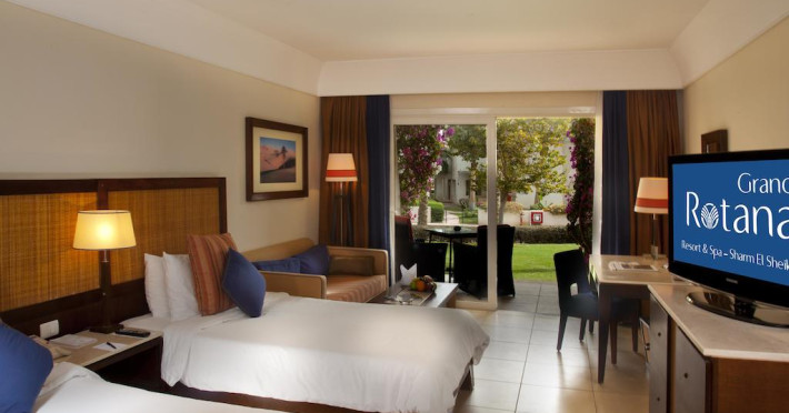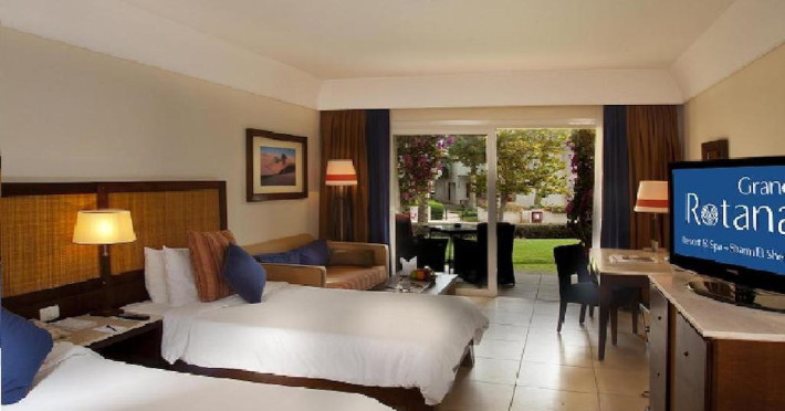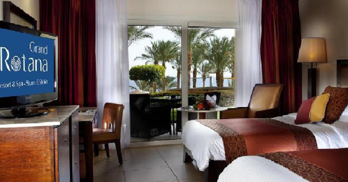 Grand Rotana Hotel este o proprietate de 5 stele care se află pe malul mării, în Sharm el Sheikh, și oferă piscină în aer liber cu șezlonguri și umbrele de soare, precum și centru spa/wellness care asigură servicii pentru un sejur extrem de relaxant. Facilitățile de la Grand Rotana Hotel includ sală de fitness, teren de tenis și business centre. Pentru petrecerea timpului liber oaspeții au la dispoziție activități de agrement pe timpul zilei și programe de divertisment seara. Proprietatea are, de asemenea, servicii de recepție cu program non - stop, concierge și închirieri auto. Se oferă acces gratuit la internet Wi-fi în spațiile publice. Parcarea este disponibilă la proprietate gratuit.