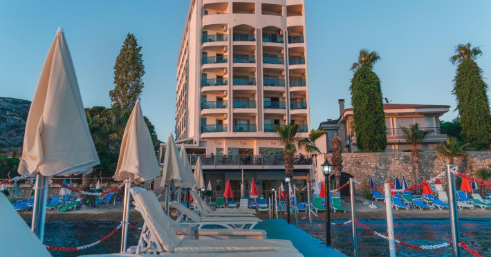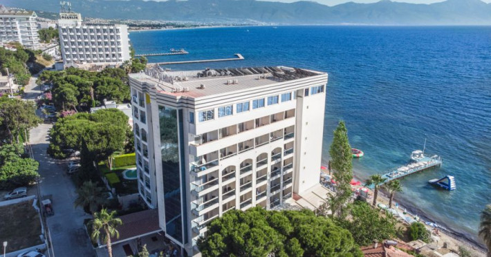Hotelul se bucura de o locatie ideala, pe malul marii si la 2.5 km de portul de agrement din Kusadasi. Cel mai apropiat aeroport este cel din Izmir, situat la 80 de km de hotel.