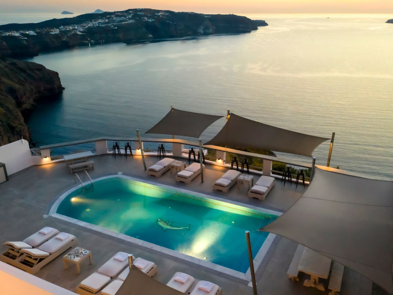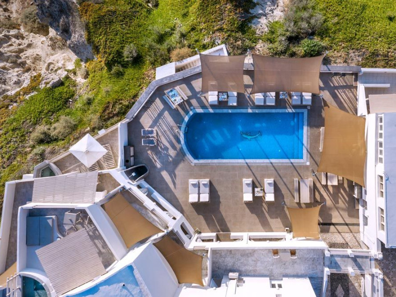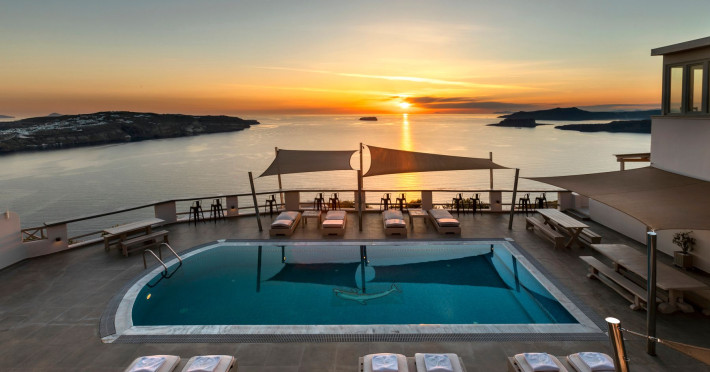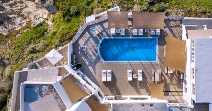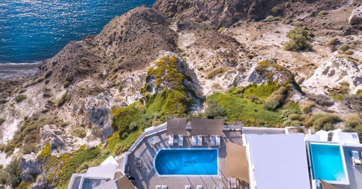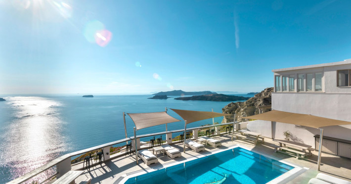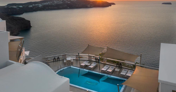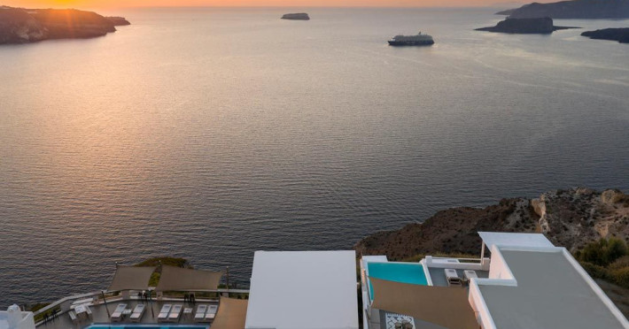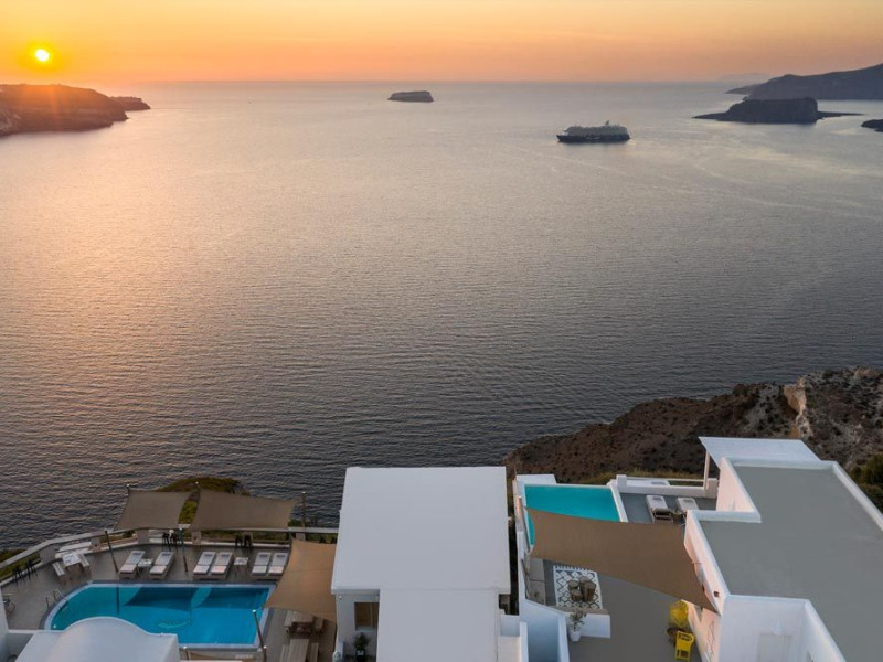 Grand View Santorini rests on the Caldera Cliffs in Megalochori, the hotel enjoy sweeping views of the volcano , the Sunset and the infinity blue of the Aegean sea and the island of Thirassia.Grand View Santorini rests on the Caldera Cliffs in Megalochori, the hotel enjoy sweeping views of the volcano , the Sunset and the infinity blue of the Aegean sea and the island of Thirassia.
