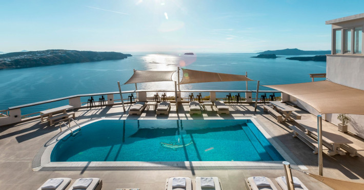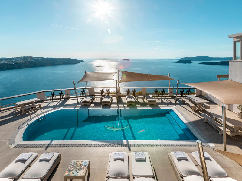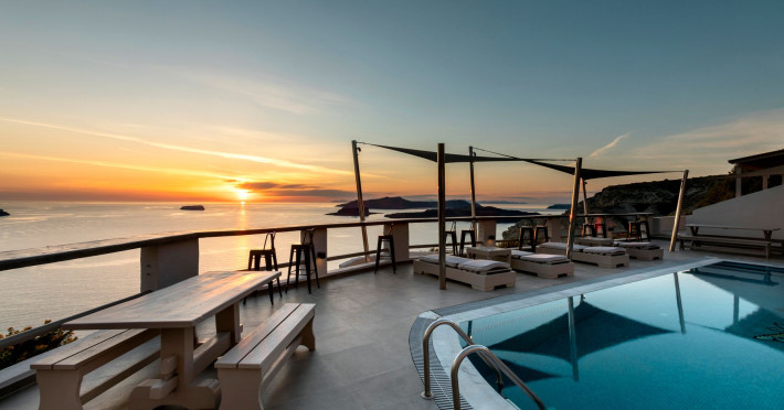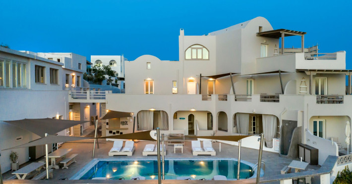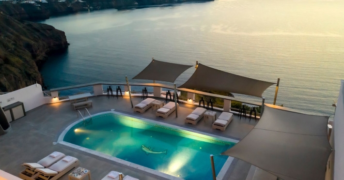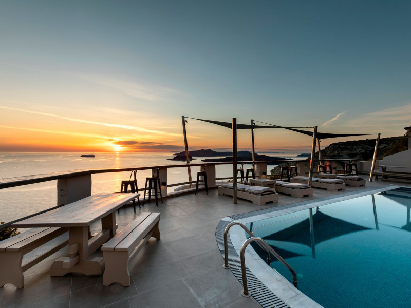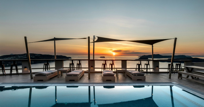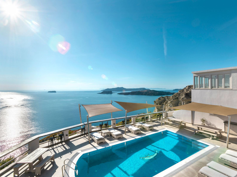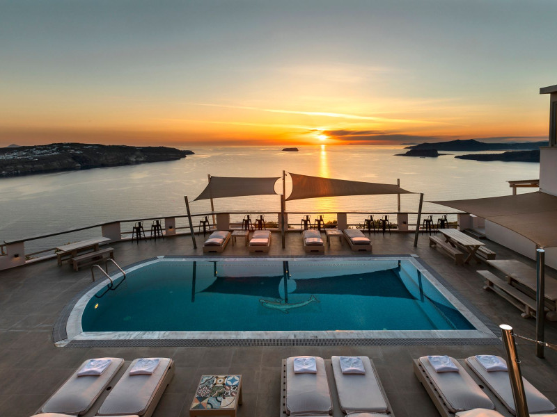 Grand View Santorini rests on the Caldera Cliffs in Megalochori, the hotel enjoy sweeping views of the volcano , the Sunset and the infinity blue of the Aegean sea and the island of Thirassia.Grand View Santorini rests on the Caldera Cliffs in Megalochori, the hotel enjoy sweeping views of the volcano , the Sunset and the infinity blue of the Aegean sea and the island of Thirassia.