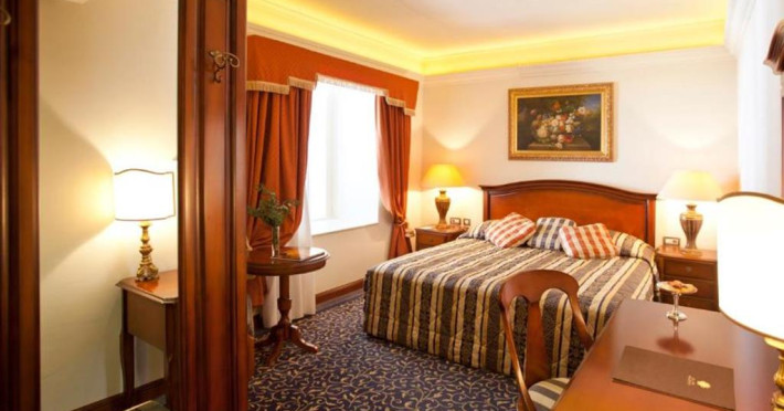 Camerele în stil clasic sunt dotate cu aer condiționat, TV cu ecran plat și minibar.