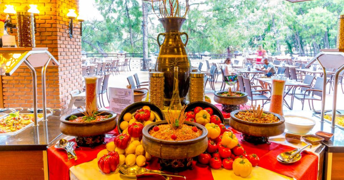 La Grand Yazici Club Marmaris Palace oaspeții au la dispoziție 5 restaurante unde pot savura mâncăruri delicioase, în stil bufet sau à la carte. Preparate din bucătăria internațională și italiană sunt oferite zilnic la micul dejun, prânz și cină. Masa poate fi servită atât în interior, cît si în aer liber, pe terasă, în funcție de vreme. 3 baruri, dintre care unul la piscină și unul pe plajă, sunt disponibile cu o ofertă variată de băuturi răcoritoare și alcoolice. În cadrul proprietății există și o cafenea ideală pentru o gustare rapidă. Pentru cei cu anumite nevoi de nutriție, Grand Yazici Club Marmaris Palace oferă meniuri pentru diete speciale.