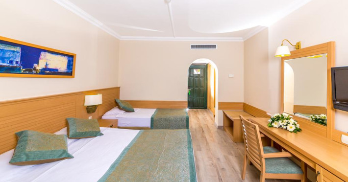 Camerele confortabile de la Grand Yazici Club Marmaris Palace au pardoseală de gresie/ marmură, aer condiționat, Tv cu canale prin satelit și seif. Unele camere au balcon cu vedere la mare, unde oaspeții pot admira apusul sau răsăritul soarelui. În camere există baie cu cadă sau duș prevăzută cu foehn. Oaspeții au acces gratuit la serviciul Wi-fi în camere. Curățenia in cameră se face zilnic. Proprietatea oferă camere pentru familie cu o suprafață mai mare și un număr mai mare de paturi față de cele standard. Se pot rezerva de asemenea camere pentru nefumători.