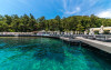 Plaja este publica, cu nisip, pietris si ponton; sezlongurile, umbrelele si prosoapele sunt cu plata.