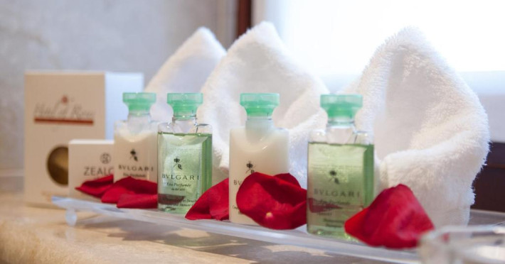 Camerele și suitele de la Grande Albergo Delle Rose sunt decorate elegant și oferă aer condiționat, TV cu ecran plat, dulap și birou. Toate unitățile de cazare includ o baie privată cu articole de toaletă gratuite Bvlgari, papuci și uscător de păr. Unele camere ale hotelului au balcon cu vedere la mare. Cele mai multe suite sunt dotate cu o cadă spa.