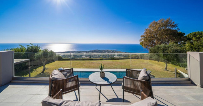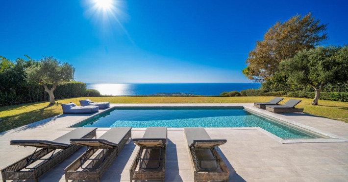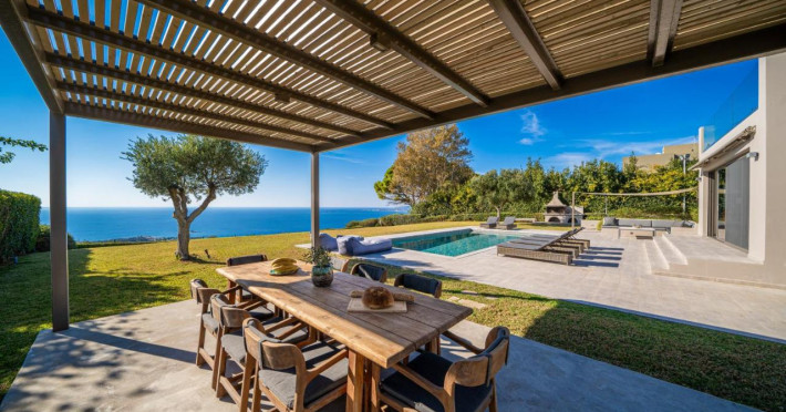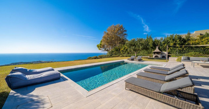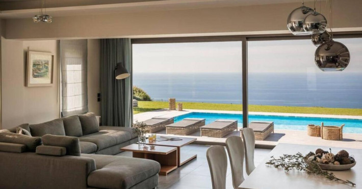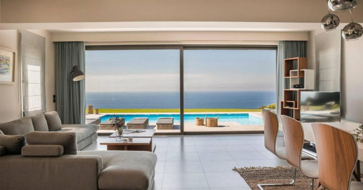 Internally, Grande Azzurro is just as impressive, with the huge modern lounge & dining areas benefitting of an almost full-width panoramic sliding window, which has the wonderful effect of giving a seamless transition from the internal spaces out into the garden & patio/pool areas, all whilst continuously being dominated by those truly incredible views.
